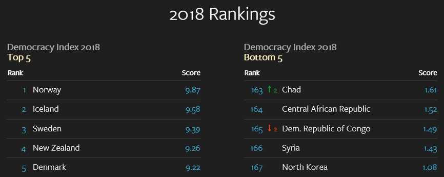 Economist Intelligence Unit Democracy Index Report 2018 released this week